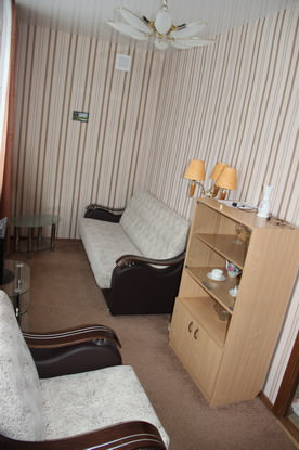 2 осн. места. 1 доп. место. Мебель: кровати односпальные, набор мягкой мебели, прикроватная тумбочка, стол, стулья, шкаф. Оборудование: телевизор, холодильник. Санузел. Сервис: смена полотенец, смена постельного белья, уборка номера.