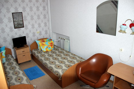 2 осн. места. 1 доп. место. Мебель: кровати односпальные, прикроватная тумбочка, стол, стулья, шкаф. Оборудование: телевизор, холодильник. Санузел на блок. Сервис: смена полотенец, смена постельного белья, уборка номера.